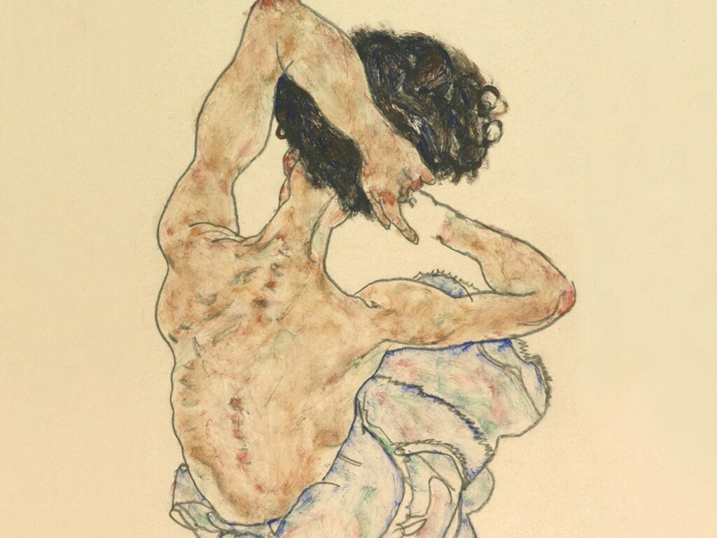Donna con mani incrociate, vista di schiena- Egon Schiele