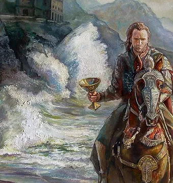 “La Leggenda del Re Pescatore inizia col re da ragazzo, che doveva passare la notte nella foresta per dimostrare il suo coraggio e diventare re, e mentre passa la notte da solo è visitato da una visione sacra: nel fuoco del bivacco gli appare il Santo Graal, simbolo della grazia divina, e una voce dice al ragazzo: “Tu custodirai il Graal onde possa guarire il cuore degli uomini!”. Ma il ragazzo accecato dalla visione di una vita piena di potere, di gloria, di bellezza, in uno stato di completo stupore, si sentì per un attimo non un ragazzo, ma onnipotente come Dio, allungò la mano per prendere il Graal e il Graal svanì, lasciandogli la mano tremendamente ustionata dal fuoco. E mentre il ragazzo cresceva, la ferita si approfondiva, finché un giorno la vita per lui non ebbe più scopo, non aveva più fede in nessuno, neanche in sé stesso, non poteva amare ne sentirsi amato, era ammalato e cominciò a morire. Un giorno un giullare entrò al castello e trovò il re da solo, ed essendo un semplice di spirito egli non vide il re, vide soltanto un uomo solo e sofferente, e chiese al re: “Che ti addolora amico?” e il re gli rispose: “Ho sete e vorrei un po’ d’acqua per rinfrescarmi la gola”. Allora il giullare prese una tazza che era accanto al letto, la riempì d’acqua e la porse al re, ed il re cominciando a bere si rese conto che la piaga si era rimarginata. Si guardò le mani e vide che c’era il Santo Graal, quello che aveva cercato per tutta la vita. Si volse al giullare e chiese stupito: “Come hai potuto trovare tu quello che i miei valorosi cavalieri mai hanno trovato?” e il giullare rispose: “Io non lo so, sapevo solo che avevi sete”.”